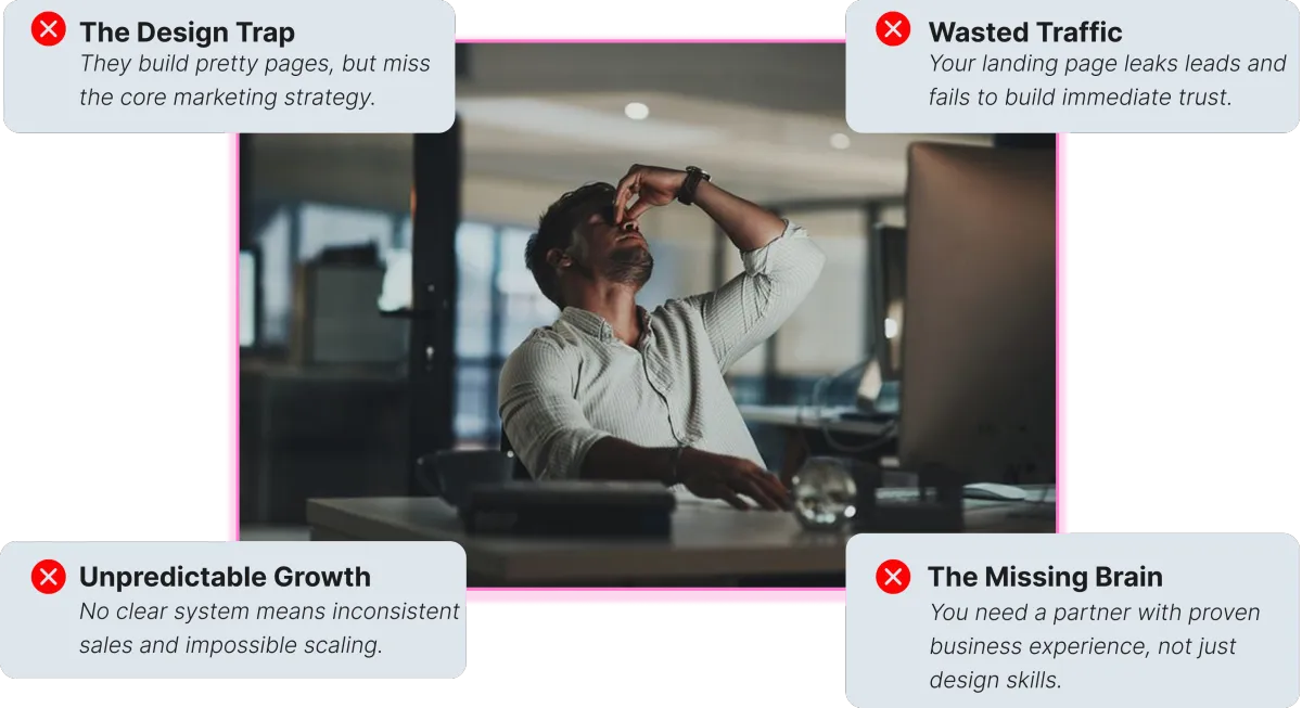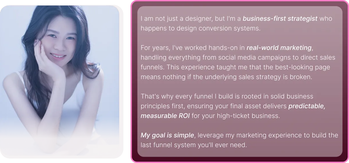 Forget complicated designs for a moment. We start by using my marketing background to figure out the fastest, most profitable way to sell your offer. We build a simple, reliable sales map first.